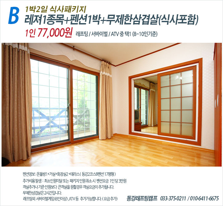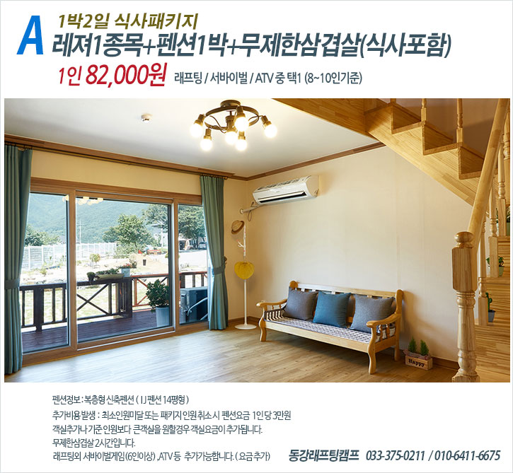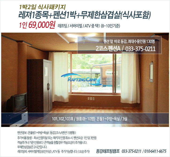 동강래프팅 1박2일 펜션패키지 예약방법 및 안내